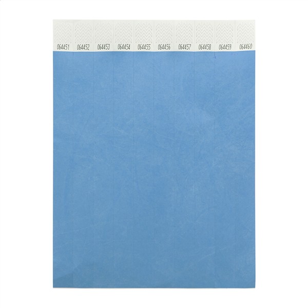 Jeden arkusz opasek Tyvek o szerokości 19 mm (10 szt.) z zapięciem zabezpieczającym i unikalną numeracją.