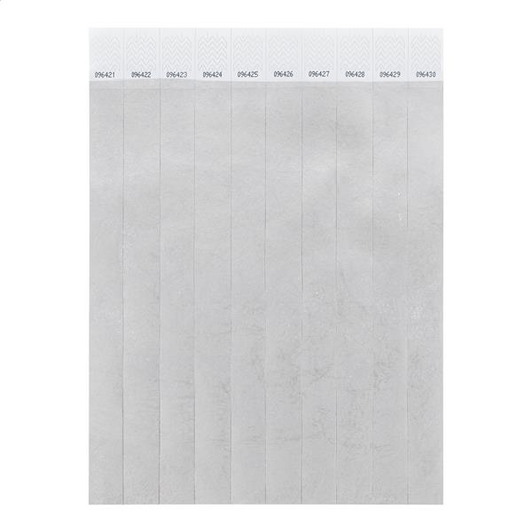 Jeden arkusz opasek Tyvek o szerokości 19 mm (10 szt.) z zapięciem zabezpieczającym i unikalną numeracją.