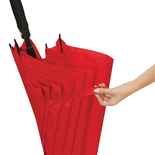 Automatyczny parasol golfowy ORA. Posiada laskę i szyny z włókna szklanego, plastikowe końcówki, uchwyt z pianki EVA z wbudowanym przyciskiem. Ma poszycie z poliestru pongee wykonane z plastiku z recyklingu (rPET). Zapinany jest na rzep.