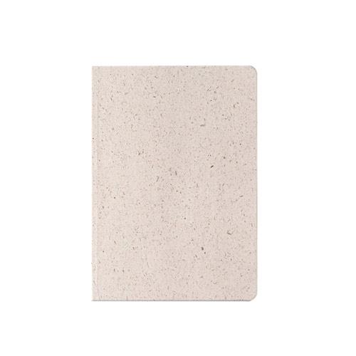 Notatnik A5 z półsztywną okładką wykonaną z organicznej masy, z rośliny zwanej „trawą słoniową” (80%) i odpadów bawełnianych (20%). Papier wewnętrzny wykonany jest z odpadów bawełnianych (100%) i jest bardzo trwały. Zawiera 100 stron w linie oraz papierową opaskę z grafiką. W procesie produkcji tego notatnika nie powstały żadne odpady, ani nie użyto żadnych środków chemicznych czy drzew. Ponieważ produkt jest wykonany z naturalnych materiałów, kolor produktu oraz wynik drukowania mogą się różnić w zależności od produktu. 140 x 200 mm