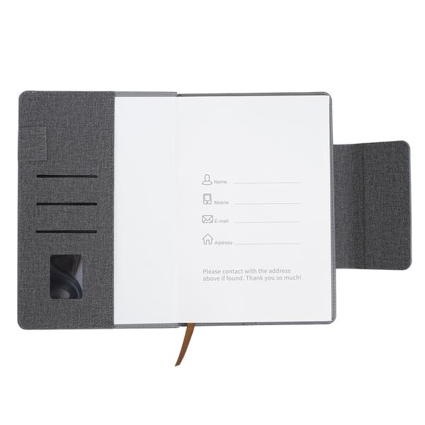Elegancki notes w linie, posiada kieszonki na wizytówki. Zamykany na magnetyczne zapięcie.