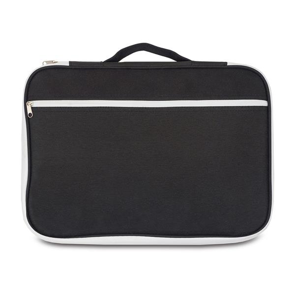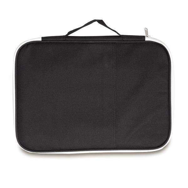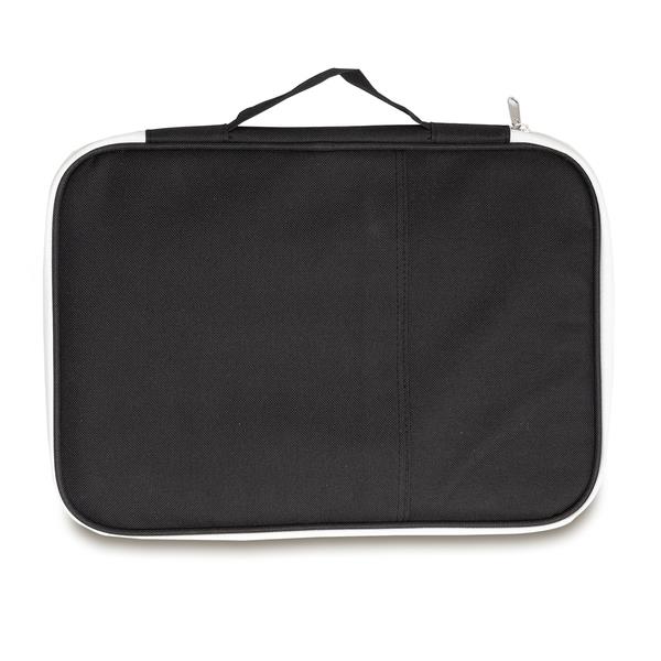 Funkcjonalne etui np. na tablet, telefon, kable, ładowarki, powerbanki i dokumenty. Zamykane na zamek błyskawiczny. Organizer wyposażony jest w uchwyt, szereg kieszonek wewnętrznych oraz 1 zewnętrzną. Przydatny w podróżach biznesowych i nie tylko.