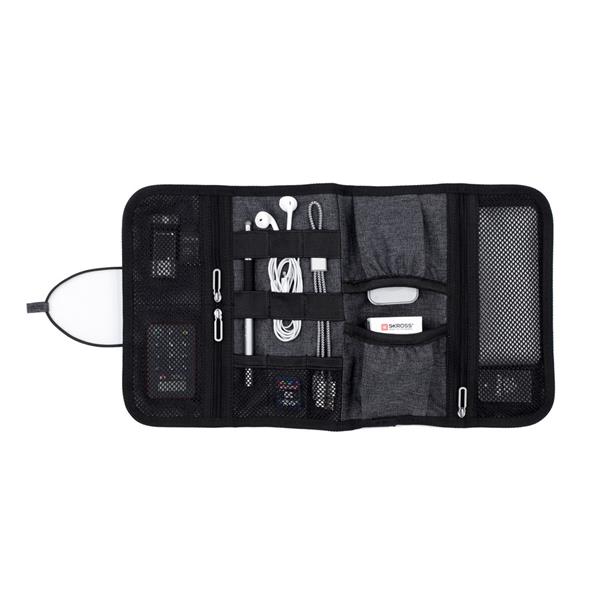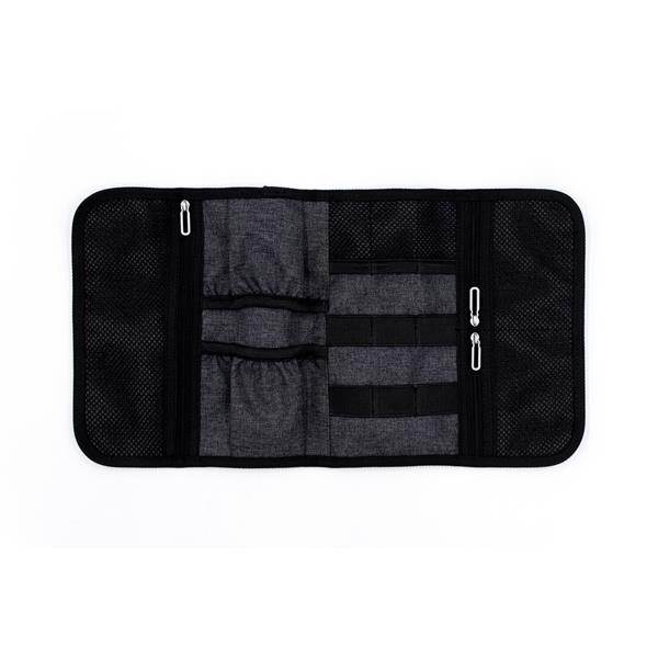 Organizer podróżny BrandCharger Folio, pomoże uporządkować urządzenia elektroniczne takie jak ładowarki, powerbanki i niezbędne kable, a także pomieści akcesoria podróżne, niewielki rozmiar sprawia, że zmieści się w torebce, plecaku lub walizce, praktyczny układ obejmuje 6 elastycznych pętli na kable i narzędzia, 3 siatkowe kieszenie na drobne przedmioty, takie jak USB lub karty SD oraz 2 otwarte kieszenie na ładowarki lub zasilacze, produkt wykonany z wodoodpornego i odpornego na plamy poliestru 600D