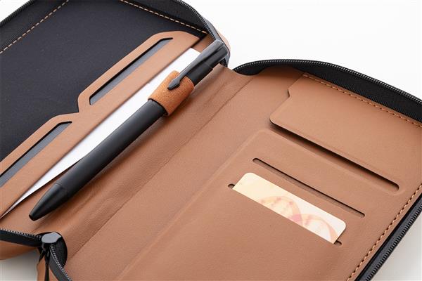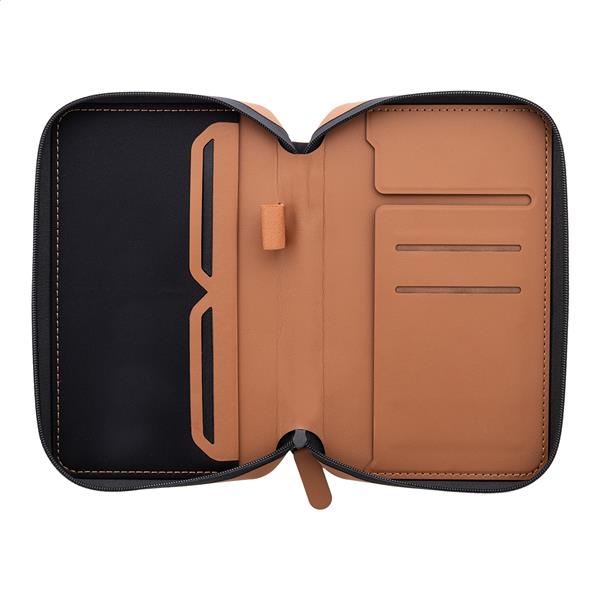 Luksusowy organizer podróżny i etui na paszport zapinane na zamek, wykonane z recyklingowanej skóry PU. Z wieloma wewnętrznymi kieszeniami na dokumenty, karty i niezbędne drobiazgi.