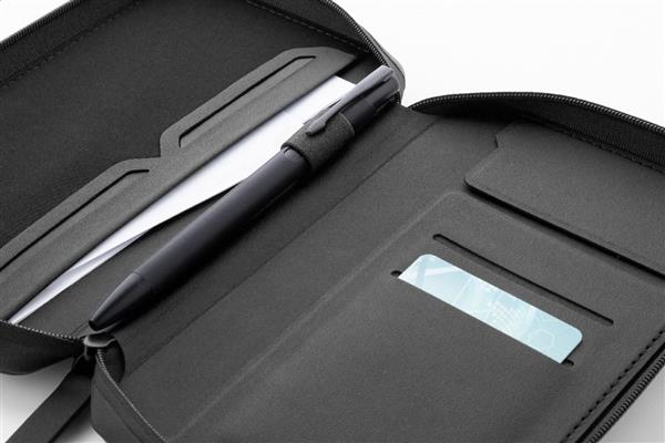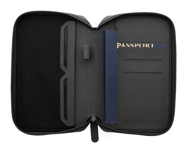 Luksusowy organizer podróżny i etui na paszport zapinane na zamek, wykonane z recyklingowanej skóry PU. Z wieloma wewnętrznymi kieszeniami na dokumenty, karty i niezbędne drobiazgi.