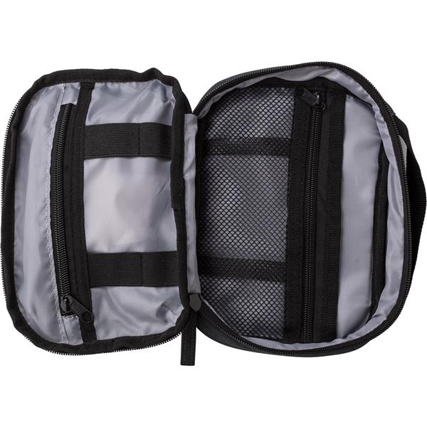 Organizer, posiada miejsca na dokumenty, słuchawki, power bank, długopis, kable