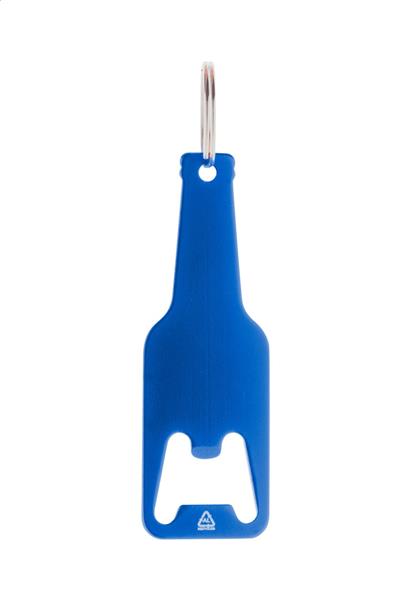 Otwieracz do butelek z aluminium pochodzącego z recyklingu w kształcie butelki z metalowym kółkiem na klucze. Description: Otwieracz do butelek z aluminium pochodzącego z recyklingu w kształcie butelki z metalowym kółkiem na klucze. Primary Color: niebieski Material 2: Metal Material 1: Aluminium z recyklingu Rozmiar: 30×89×2 mm