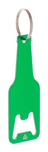 Otwieracz do butelek z aluminium pochodzącego z recyklingu w kształcie butelki z metalowym kółkiem na klucze. Description: Otwieracz do butelek z aluminium pochodzącego z recyklingu w kształcie butelki z metalowym kółkiem na klucze. Primary Color: zielony Material 2: Metal Material 1: Aluminium z recyklingu Rozmiar: 30×89×2 mm
