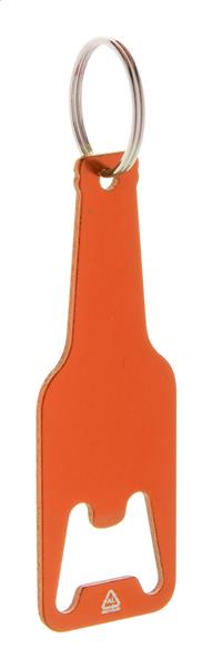Otwieracz do butelek z aluminium pochodzącego z recyklingu w kształcie butelki z metalowym kółkiem na klucze. Description: Otwieracz do butelek z aluminium pochodzącego z recyklingu w kształcie butelki z metalowym kółkiem na klucze. Primary Color: pomarańcz Material 2: Metal Material 1: Aluminium z recyklingu Rozmiar: 30×89×2 mm
