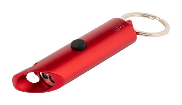 Mini latarka z aluminium pochodzącego z recyklingu, z 3 diodami LED, otwieraczem do butelek i brelokiem. Z baterią guzikową. Description: Mini latarka z aluminium pochodzącego z recyklingu, z 3 diodami LED, otwieraczem do butelek i brelokiem. Z baterią guzikową. Primary Color: czerwony Baterie w zestawie: Tak Material 1: Aluminium z recyklingu Rozmiar: o22×86 mm