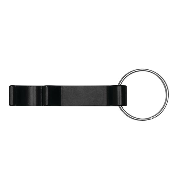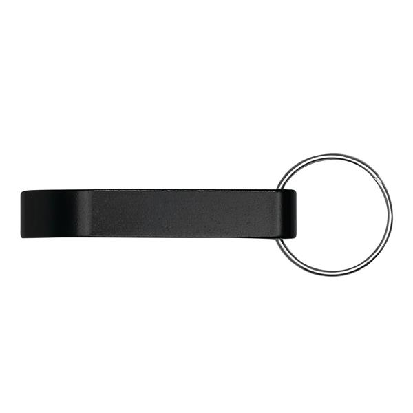 Otwieracz do butelek OPEN z kółkiem na klucze. Materiał: Aluminium/Żelazo Kolor: czarny Tagi: otwieracze/zakrętki do butelek,artykuły gospodarstwa domowego,breloczki/smycze