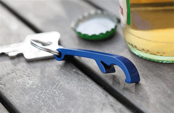 Otwieracz do butelek OPEN z kółkiem na klucze. Materiał: Aluminium/Żelazo Kolor: niebieski Tagi: otwieracze/zakrętki do butelek,artykuły gospodarstwa domowego,breloczki/smycze