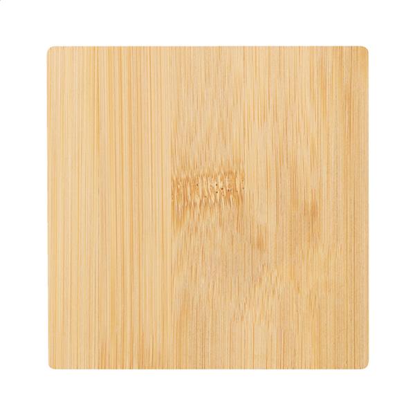 Bambusowa podkładka z otwieraczem do butelek.