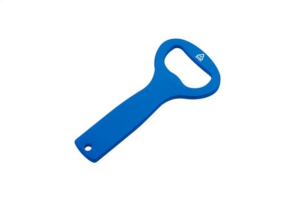 Otwieracz do butelek z aluminium z recyklingu. Description: Otwieracz do butelek z aluminium z recyklingu. Primary Color: niebieski Material 1: Aluminium z recyklingu Rozmiar: 85×38×3 mm