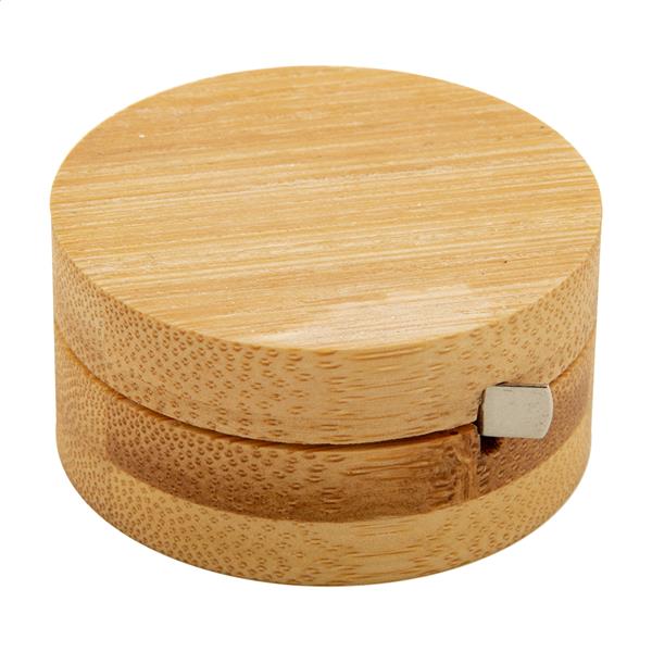 Okrągły bambusowy otwieracz do butelek z jedno metrową miarką.