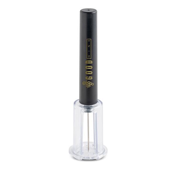Korkociąg próżniowy. Otwieranie wina jeszcze nigdy nie było tak proste! Wystarczy wsunąć igłę w korek, wykonać 4/5 ruchów pompką w górę i w dół, i… Dzieje się magia! Rozmiar: 19,5 x 5 cm T3 (tampodruk): 4 x 1 cm Kolor: Czarny