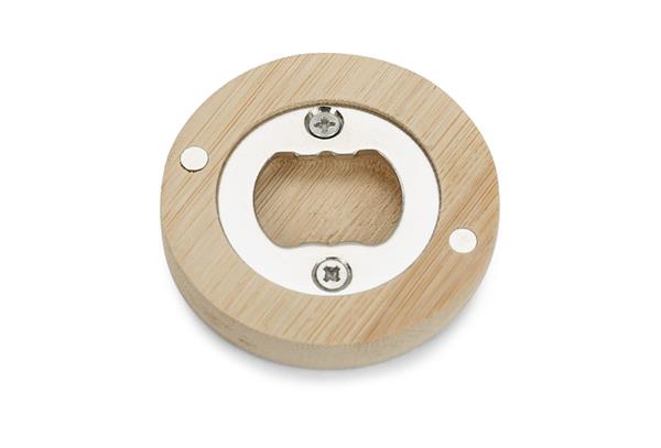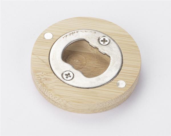 Praktyczny otwieracz do kapsli wykonany z ekologicznego materiału – bambusa. Umieszczone na spodzie magnesy umożliwiają przymocowanie go do metalowych części, np. drzwi lodówki, dzięki czemu otwieracz jest łatwo dostępny zawsze, kiedy go potrzebujemy. Cześć służąca do otwierania butelek wykonana z wytrzymałej stali nierdzewnej.
