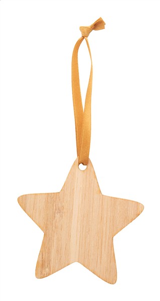 Ozdoba choinkowa ze sklejki bambusowej ze złotą wstążką. Dostarczane z odłączoną wstążką.