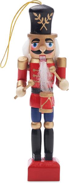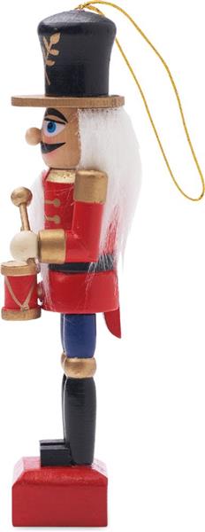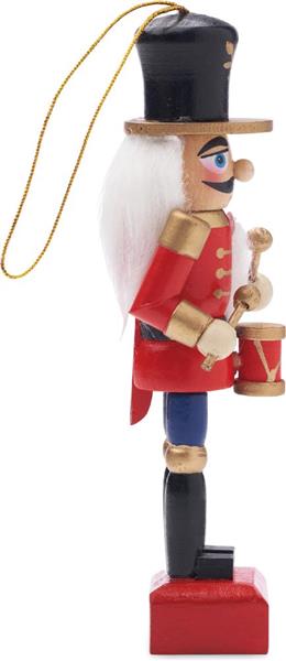 Mała drewniana ozdoba w formie dziadka do orzechów.