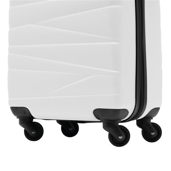 Walizka podróżna na kółkach PADUA z możliwością pakowania z obu stron. Wyściełane wnętrze z przegrodą zamykaną na zamek i paskami do pakowania, wysuwany uchwyt teleskopowy, uchwyt do podnoszenia, 4 gładko jeżdżące koła, zamek szyfrowy. Rozmiar odpowiedni dla tanich linii lotniczych. Materiał: ABS Kolor: biały Tagi: Wózki,walizki,bagaże,akcesoria podróżne