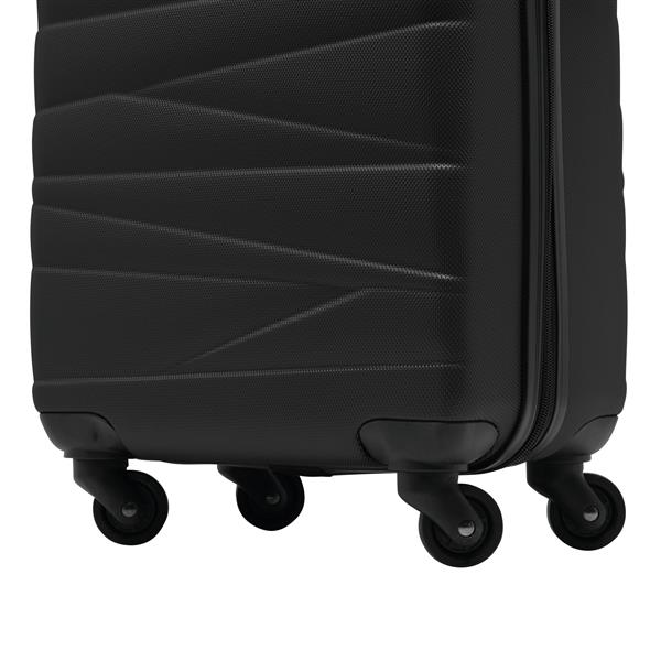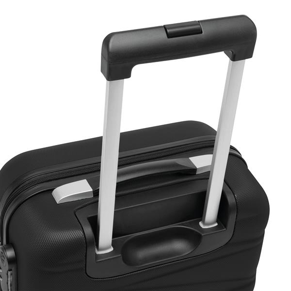 Walizka podróżna na kółkach PADUA z możliwością pakowania z obu stron. Wyściełane wnętrze z przegrodą zamykaną na zamek i paskami do pakowania, wysuwany uchwyt teleskopowy, uchwyt do podnoszenia, 4 gładko jeżdżące koła, zamek szyfrowy. Rozmiar odpowiedni dla tanich linii lotniczych. Materiał: ABS Kolor: czarny Tagi: Wózki,walizki,bagaże,akcesoria podróżne
