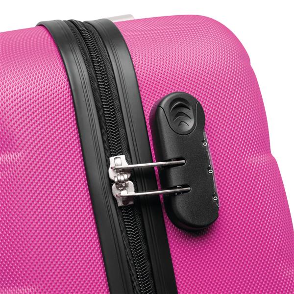 Walizka podróżna na kółkach PADUA z możliwością pakowania z obu stron. Wyściełane wnętrze z przegrodą zamykaną na zamek i paskami do pakowania, wysuwany uchwyt teleskopowy, uchwyt do podnoszenia, 4 gładko jeżdżące koła, zamek szyfrowy. Rozmiar odpowiedni dla tanich linii lotniczych. Materiał: ABS Kolor: różowy Tagi: Wózki,walizki,bagaże,akcesoria podróżne