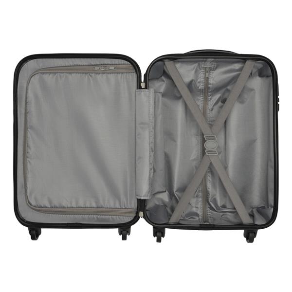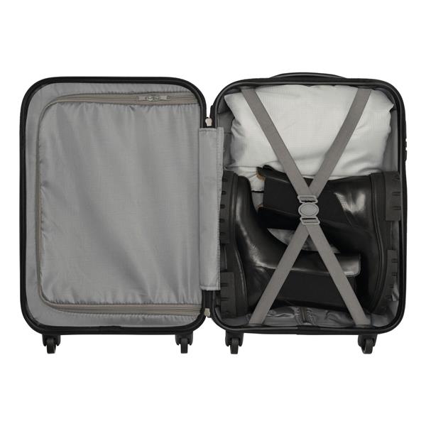 Walizka podróżna na kółkach PADUA z możliwością pakowania z obu stron. Wyściełane wnętrze z przegrodą zamykaną na zamek i paskami do pakowania, wysuwany uchwyt teleskopowy, uchwyt do podnoszenia, 4 gładko jeżdżące koła, zamek szyfrowy. Rozmiar odpowiedni dla tanich linii lotniczych.