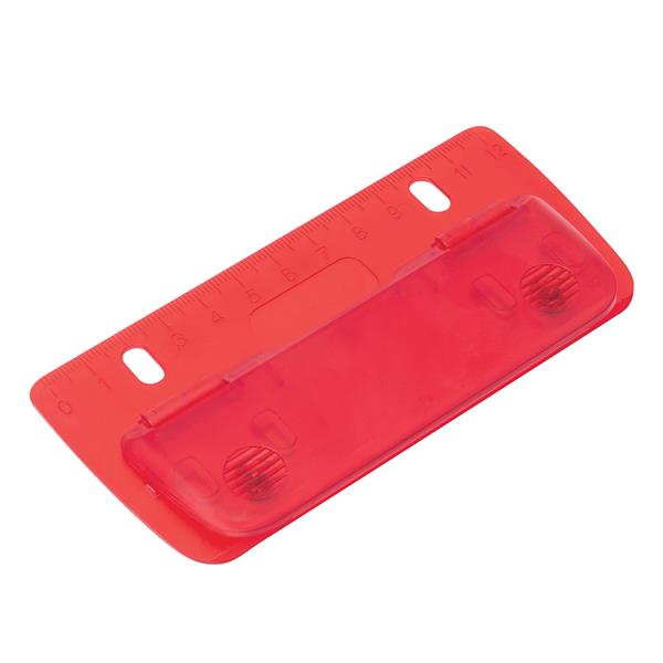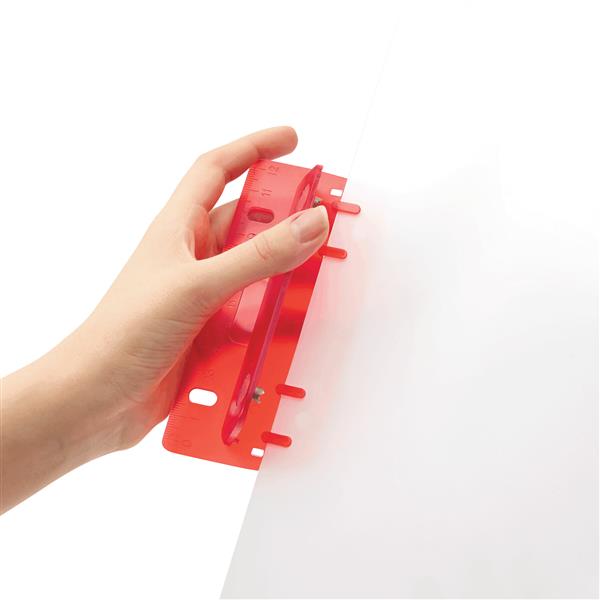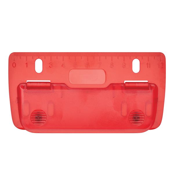 Mini dziurkacz PAGE z wbudowaną linijką (12 cm) i dwoma otworami pasującymi do aktówki. Materiał: Plastik Kolor: czerwony Tagi: Akcesoria biurowe,linijki