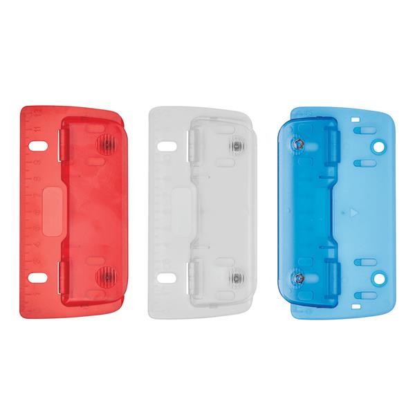 Mini dziurkacz PAGE z wbudowaną linijką (12 cm) i dwoma otworami pasującymi do aktówki.