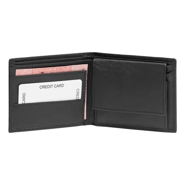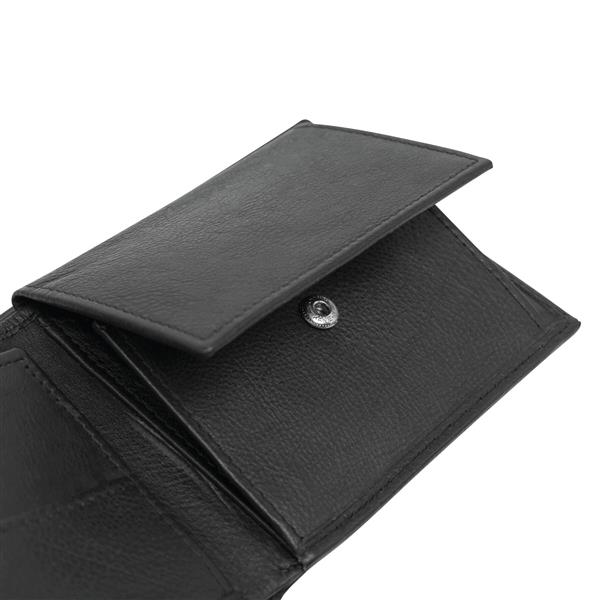 Portfel PALERMO z naturalnej skóry, z kieszeniami na karty i kieszonką na monety z zatrzaskiem. Materiał: Skóra Kolor: czarny Tagi: Portmonetki,portfele,skóra