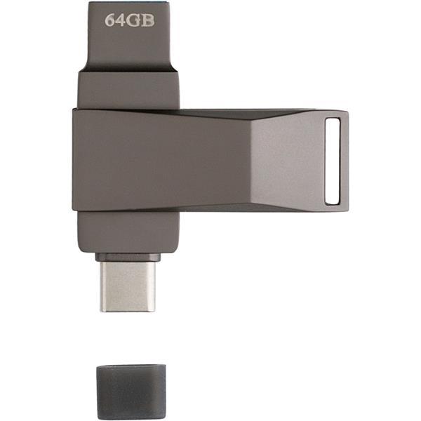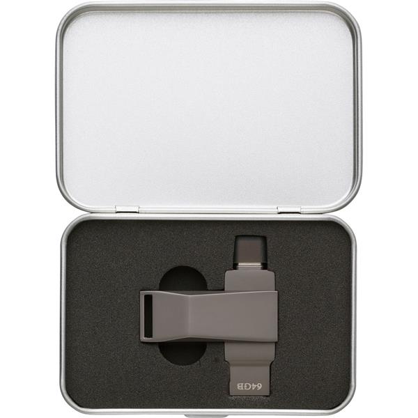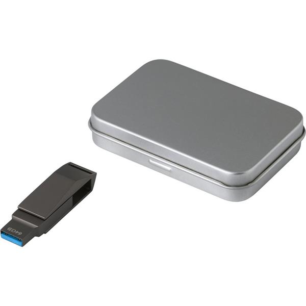 Pamięć USB 64 GB w metalowym etui, USB i USB typu C