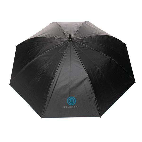 Parasol 27″, automatyczne otwieranie, uchwyt z PP, metalowa rama, żebrowanie z włókna szklanego, panele wykonane z 10,7 poddanych recyklingowi butelek PET (500 ml), dzięki zastosowaniu technologii AWARE™ wykorzystane materiały są identyfikowalne z pochodzenia, 2% wpływów z każdego sprzedanego produktu z kolekcji Impact jest przekazywane na rzecz Water.org