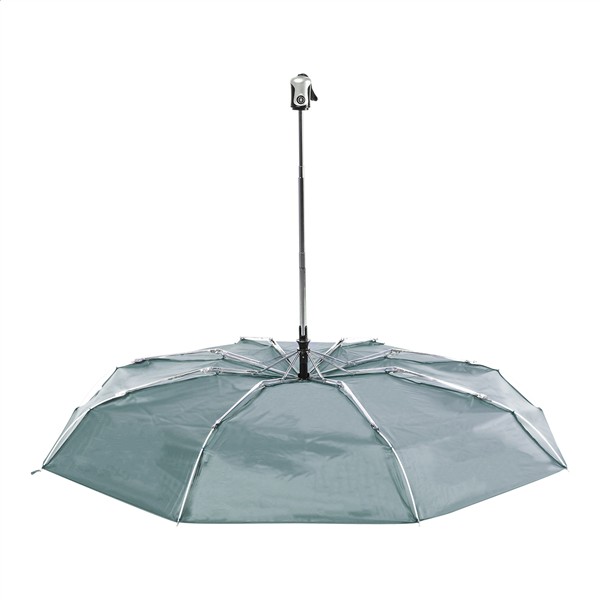 W pełni automatyczny (otwieranie/zamykanie) wiatroodporny parasol składany z 8 panelami. Z metalowym trzpieniem, ramą z metalu/włókna szklanego i dopasowanym kolorystycznie etui i plastikowym uchwytem. Poliester 190T.