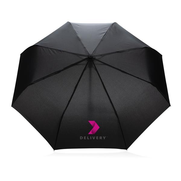 Parasol 21″, automatyczne otwieranie, uchwyt z ABS, metalowa rama, żebrowanie z włókna szklanego, panele wykonane z 7,3 poddanych recyklingowi butelek PET (500 ml), dzięki zastosowaniu technologii AWARE™ wykorzystane materiały są identyfikowalne z pochodzenia, 2% wpływów z każdego sprzedanego produktu z kolekcji Impact jest przekazywane na rzecz Water.org