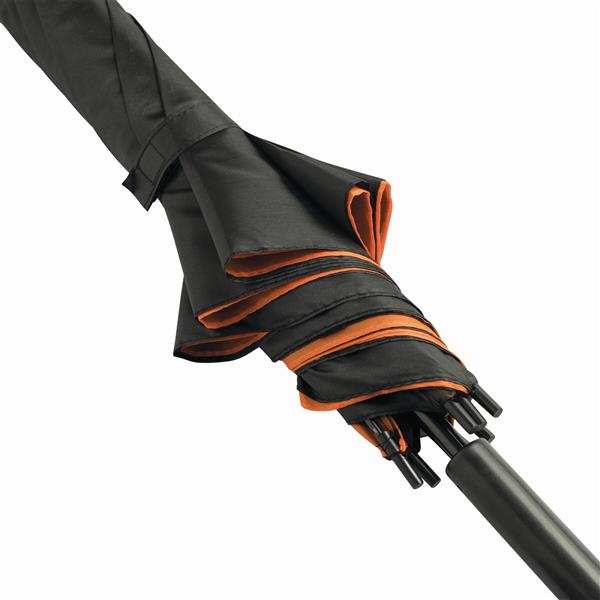 Parasol automatyczny DOUBLY z metalową laską, plastikowymi kolcami i uchwytem, dwuwarstwowym poszyciem z poliestru w dwóch kolorach, zapięciem na rzep. Materiał: Metal/Poliester Kolor: czarny, pomarańczowy Tagi: parasole,parasole