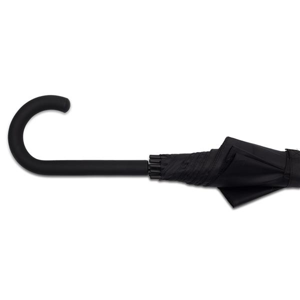 Popularny automatycznie rozkładany parasol z przyjemną w dotyku gumowaną rączką typu soft grip. Średnica parasola 1020 mm. Rama, pałąk i żebra wykonane z metalu.