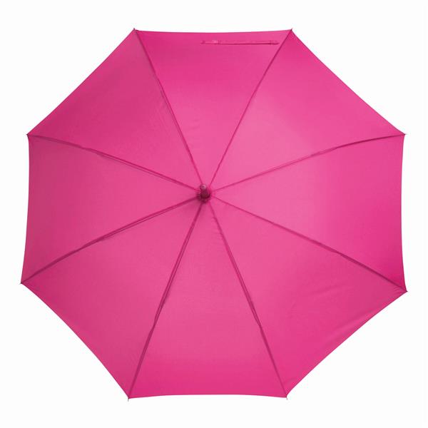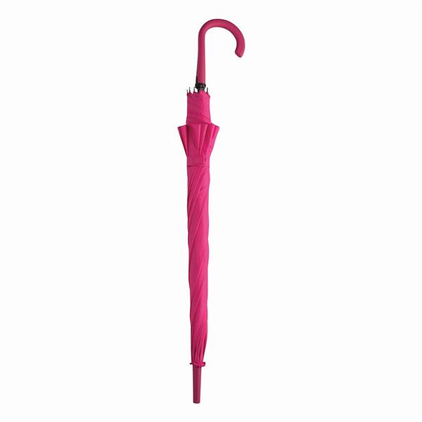 Parasol automatyczny LAMBARDA z metalową laską, szynami z włókna szklanego, metalowymi kolcami, uchwytem pokrytym gumą, z wbudowanym przyciskiem, poszycie z poliestru pongee ze specjalną wodoodporną powłoką, zapięcie na rzep. Wiatroodporny. Materiał: Metal/Włókno szklane/Poliester Kolor: ciemnoróżowy Tagi: parasole,parasole