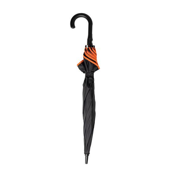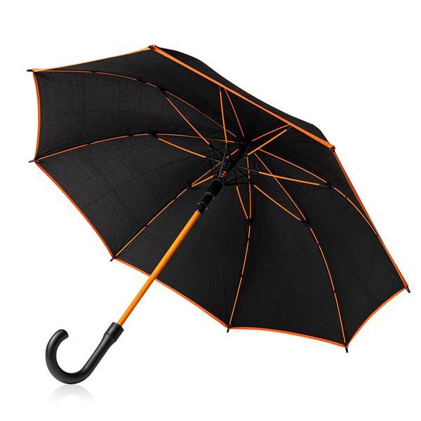 Parasol automatyczny z kolorowymi akcentami wykonany z pongee 190T, stelarz parasola wykonany z włókna szklanego Rozmiar: 77,5 x 103 cm S2 (sitodruk): 20 x 15 TT2 (termotransfer): 15 x 10 Kolor: Pomarańczowy