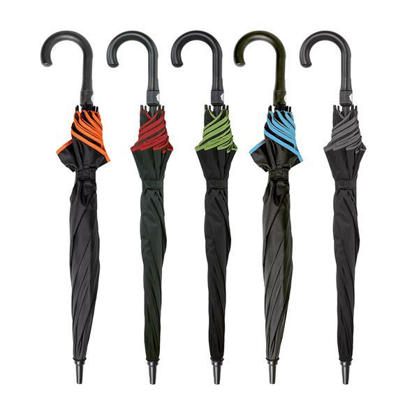 Parasol automatyczny z kolorowymi akcentami wykonany z pongee 190T, stelarz parasola wykonany z włókna szklanego