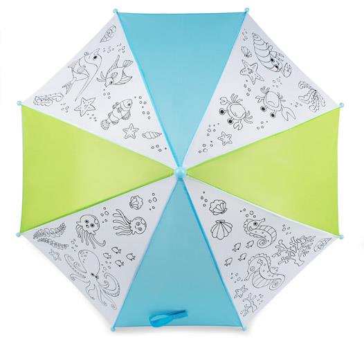 KIDDI to parasol dla dzieci, który został ozdobiony morskimi wzorami zaprojektowanymi przez grafików Blue Collection. W zestawie sześć wodoodpornych pisaków do samodzielnego pokolorowania parasola. Parasol manualny, wykonany z poliestru.