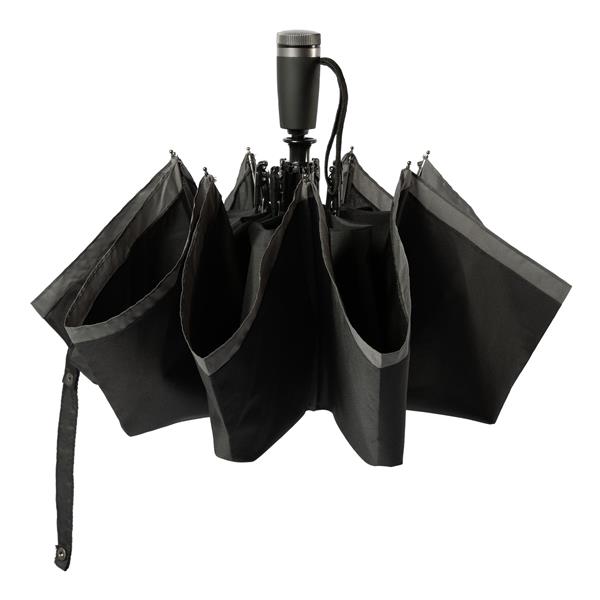 Kieszonkowy parasol z ciekawymi akcentami kolorystycznymi, wyróżnia się nowoczesnym miejskim wyglądem. Płótno jest podwójnie barwione, a jaskrawo zabarwione krawędzie nadają mu charakterystyczny styl. Parasol posiada mechanizm automatycznego otwierania i zamykania. Rozmiar: Dia. 1040 / L. 620 mm Kolor: Szary