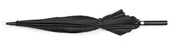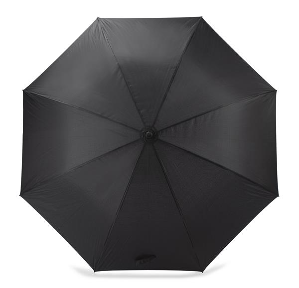 Elegancki, duży parasol (średnica po rozłożeniu 122cm) z drewnianą rączką. Wykonany z włókna szklanego i materiału typu pongee 190 T. Otwierany automatycznie. Logo naniesiemy techniką sitodruku.