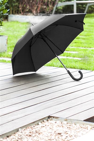 Automatyczny, wiatroszczelny, 8 panelowy parasol z gumową rączką, metalowym korpusem i stelażem z włókna szklanego. Produkt marki André Philippe.