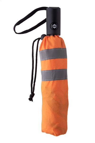 W pełni automatyczny (otwieranie/zamykanie), wiatroodporny parasol z 8 panelami i wykończeniem odblaskowym. Z metalowym trzonem, aluminiową ramą, żebrami z włókna szklanego i plastikowym uchwytem. W dopasowanym kolorowym etui z odblaskowymi pasami. 190T pongee. Produkt przeznaczony wyłącznie do celów promocyjnych nie kwalifikuje się jako sprzęt ochrony osobistej.