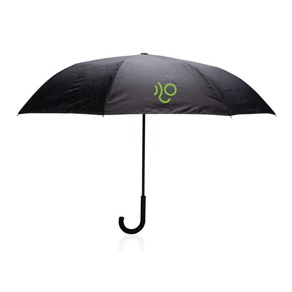 Odwracalny parasol 23″, manualne otwieranie i zamykanie, rama i żebrowanie z włókna szklanego, uchwyt z PP, panele wykonane z 14,9 poddanych recyklingowi butelek PET (500 ml), dzięki zastosowaniu technologii fizycznych znaczników AWARE™ wykorzystane materiały są identyfikowalne z pochodzenia, 2% wpływów z każdego sprzedanego produktu z kolekcji Impact jest przekazywane na rzecz Water.org