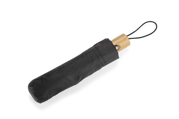 Parasol RALO to stylowe i wygodne rozwiązanie na każdą pogodę. Dzięki automatycznemu mechanizmowi otwierania i zamykania rozkłada się jednym przyciskiem umieszczonym na drewnianej rączce. Czasza z wytrzymałego materiału rPET poliester 190T skutecznie chroni przed deszczem, a stelaż z metalu i włókna szklanego zwiększa odporność na wiatr. Całość dopełnia drewniany guzik na pasku zamykającym, który dodaje parasolowi oryginalnego charakteru. Możliwość znakowania sprawia, że RALO świetnie sprawdzi się jako elegancki gadżet reklamowy.