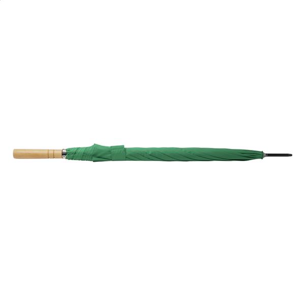 Automatyczny, wiatroodporny parasol z 8 panelami, drewnianą rączką, metalową ramą i żebrami z włókna szklanego. 190T pongee z RPET.