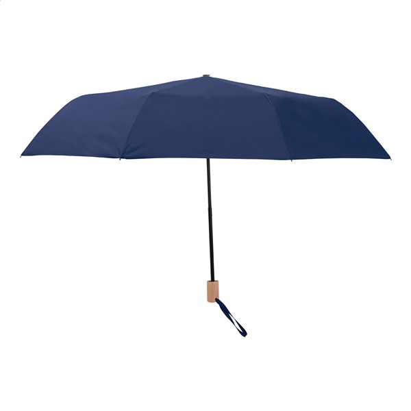 Manualny, składany parasol z 8 panelami z dopasowanym kolorystycznie etui. Z metalową ramą, stelażem z włókna szklanego i drewnianą rączką. Produkt z butelek PET z recyklingu.