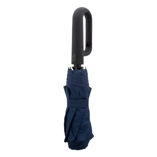 W pełni automatyczny (otwieranie/zamykanie), wiatroszczelny, składany parasol z 8 panelami w dopasowanym kolorystycznie etui. Z metalową ramą, żebrami z włókna szklanego i gumowanym uchwytem z karabińczykiem. Pongee 190T RPET. Z charakterystyczną metką RPET.