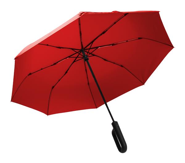 W pełni automatyczny (otwieranie/zamykanie), wiatroszczelny, składany parasol z 8 panelami w dopasowanym kolorystycznie etui. Z metalową ramą, żebrami z włókna szklanego i gumowanym uchwytem z karabińczykiem. Pongee 190T RPET. Z charakterystyczną metką RPET.